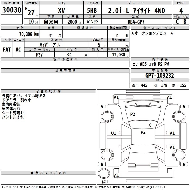 SUBARU SUBARU XV 2015 г., лот № 30030