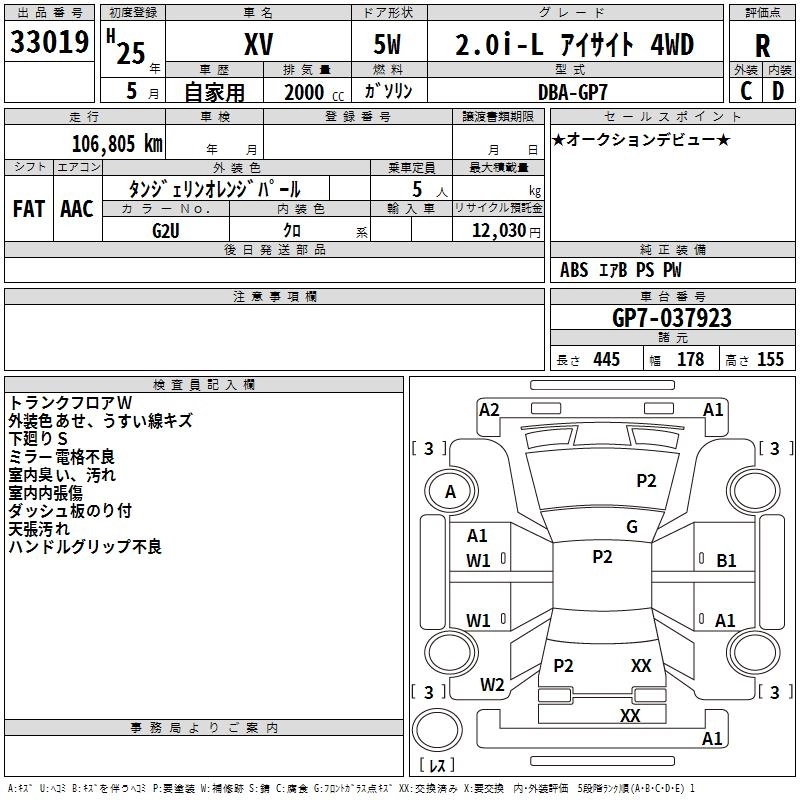 Год выпуска2013 Пробег 107 000 км КузовGP7 Комплектация2.0I-L EYESIGHT 4WD