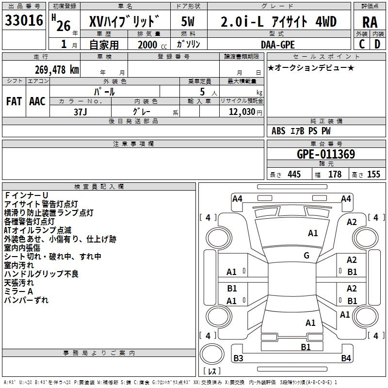 SUBARU SUBARU XV 2014 г., лот № 33016