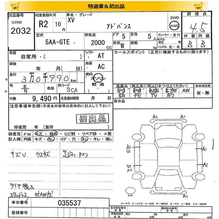 SUBARU SUBARU XV 2020 г., лот № 2032