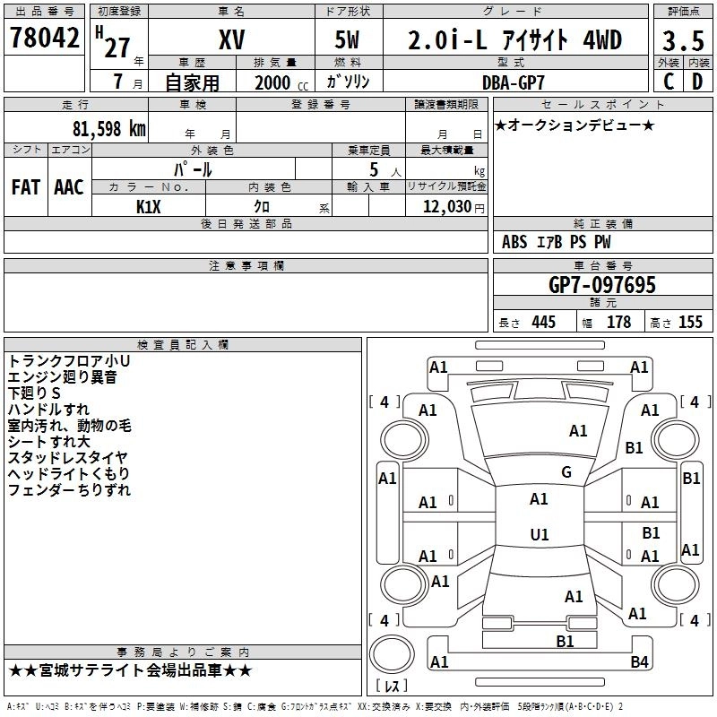 SUBARU SUBARU XV 2015 г., лот № 78042