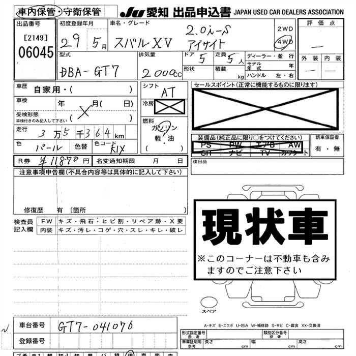 SUBARU SUBARU XV 2017 г., лот № 6045
