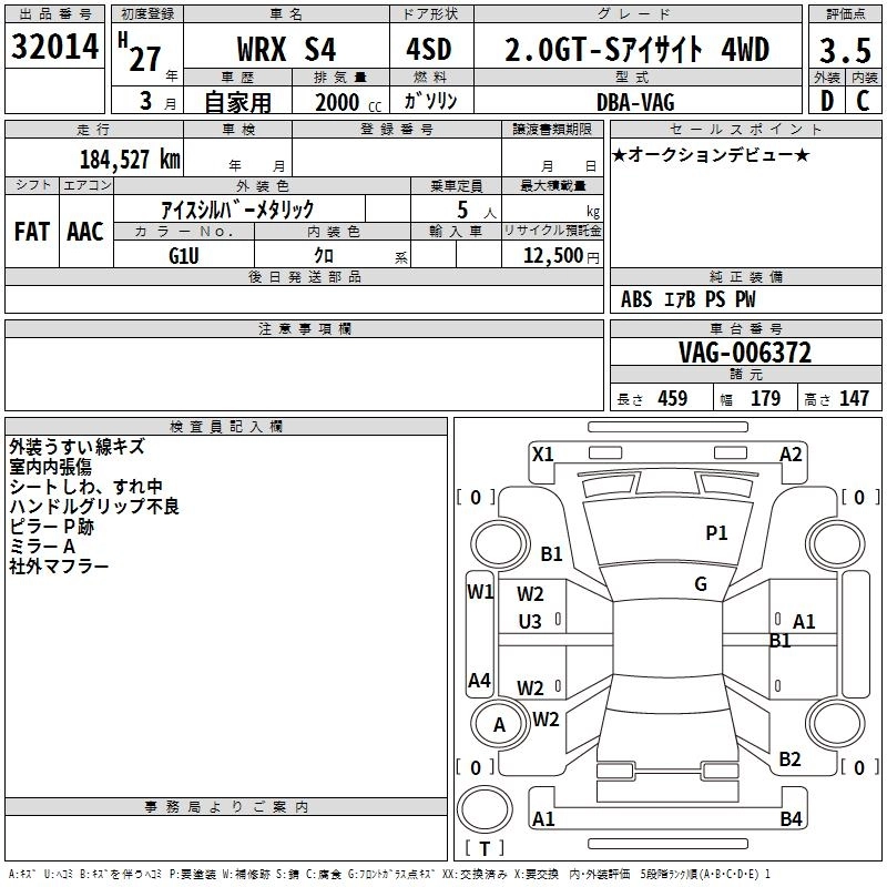 SUBARU WRX S4 2015 г., лот № 32014