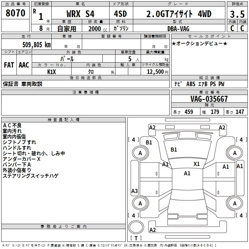Статус выставлен на аукцион Лот 8070 Аукцион TAA Chubu Дата аукциона 12.03.2026