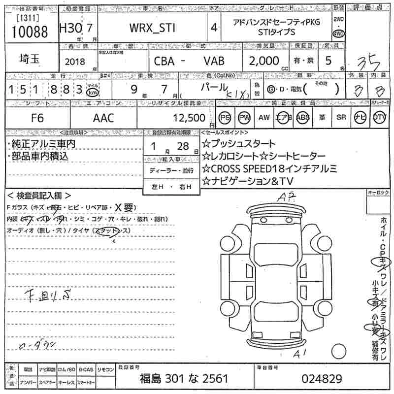 SUBARU WRX STI 2018 г., лот № 10088