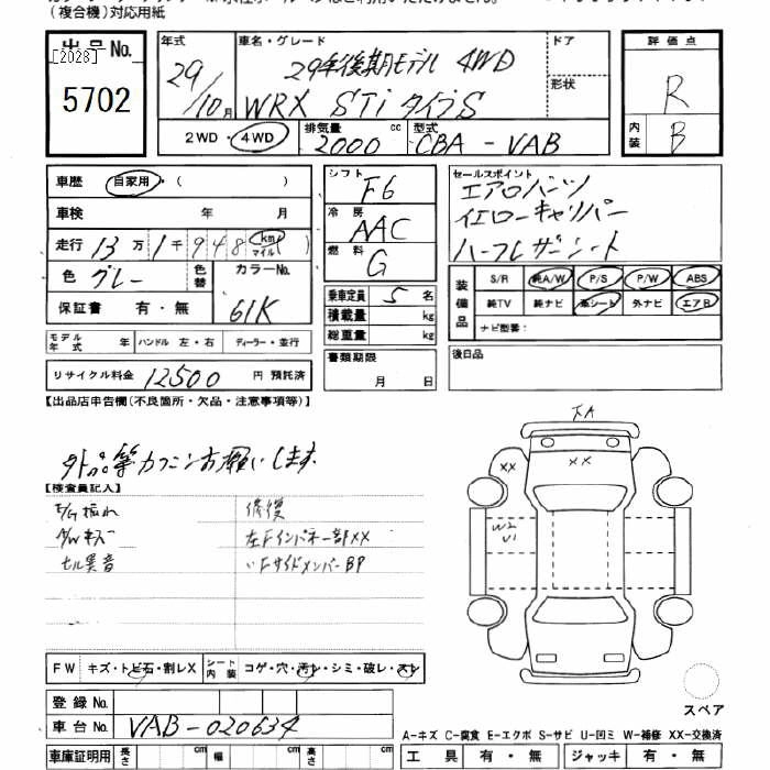 SUBARU WRX STI 2017 г., лот № 5702