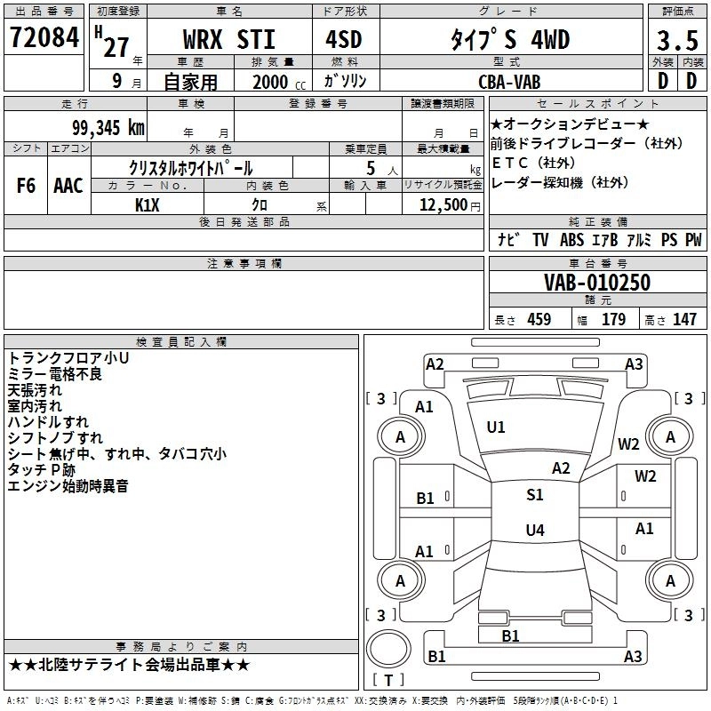 Статус выставлен на аукцион Лот 72084 Аукцион TAA Chubu Дата аукциона 12.03.2026
