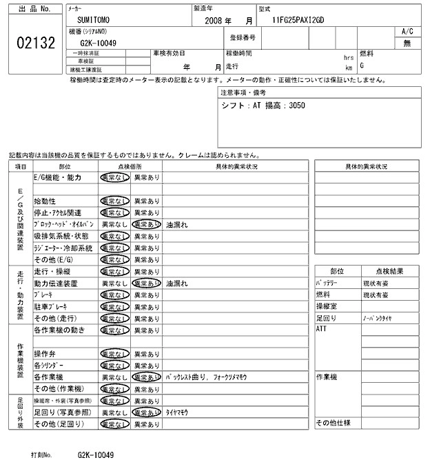 Год выпуска2008 Кузов11FG25PAXI2GD Комплектация FORKLIFT