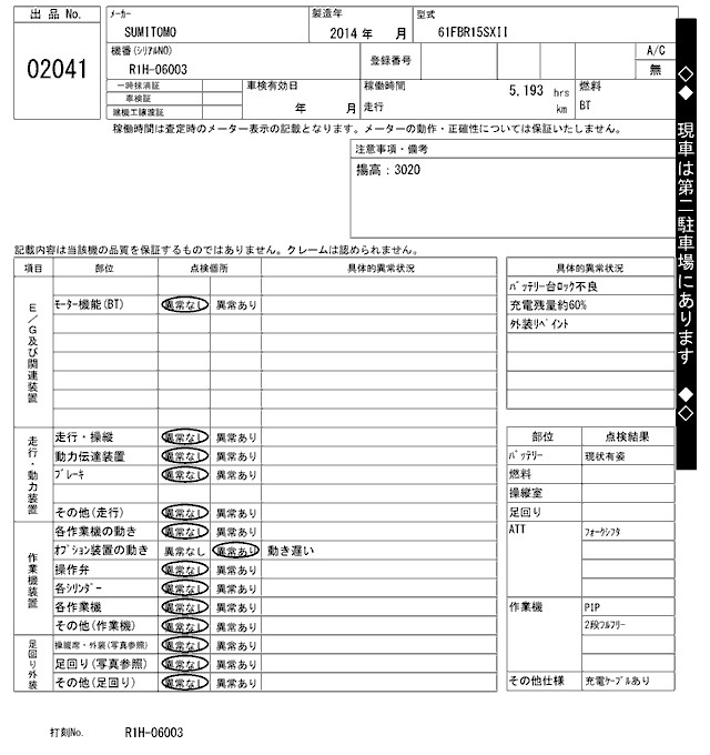 Статус не продан Лот 2041 Аукцион ARAI Kenki Дата аукциона 10.03.2026