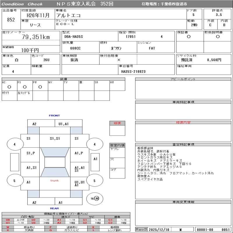 SUZUKI ALTO ECO 2014 г., лот № 852