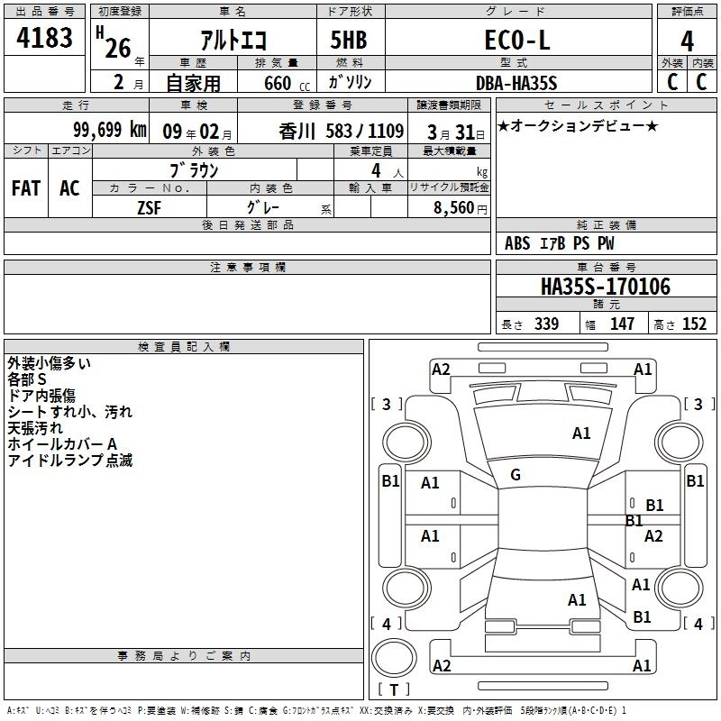 Статус выставлен на аукцион Лот 4183 Аукцион TAA Shikoku Дата аукциона 10.03.2026