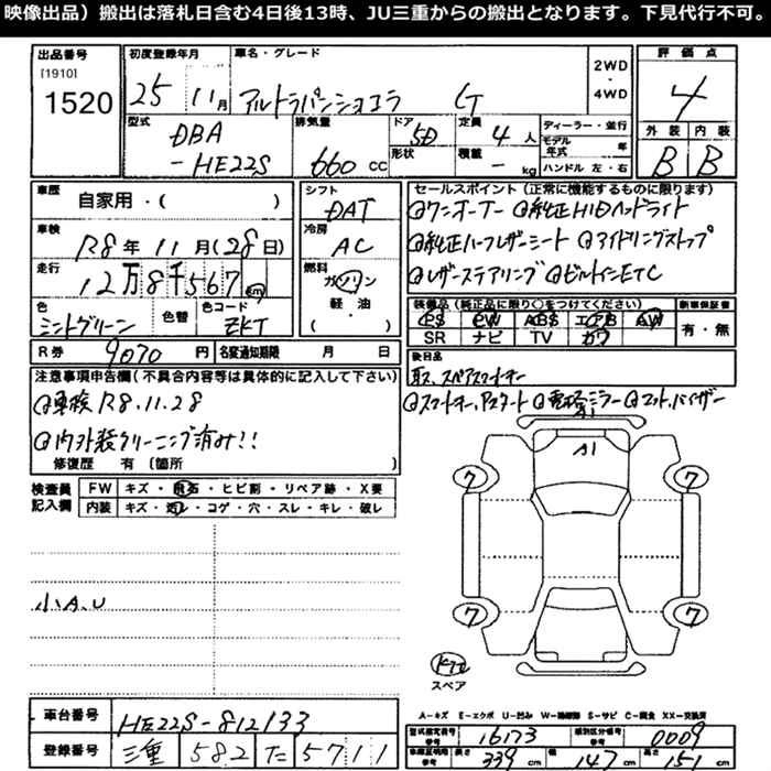 Год выпуска2013 Пробег 129 000 км КузовHE22S КомплектацияG