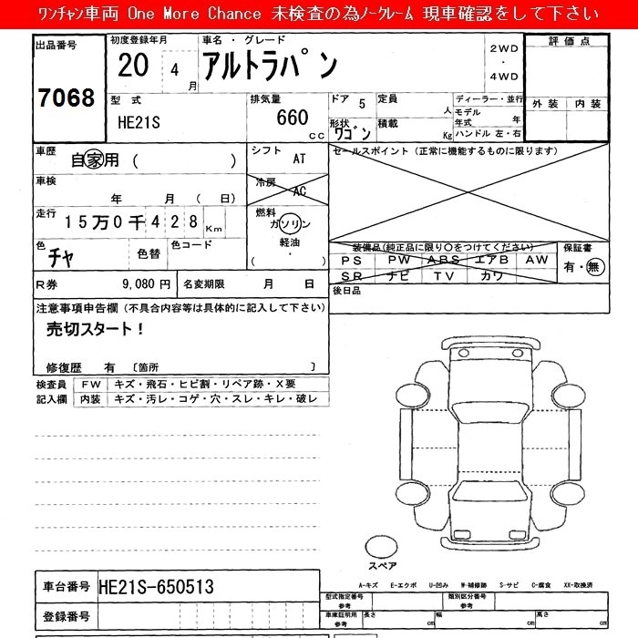 Стартовая цена авто на аукционе 21 000 ¥