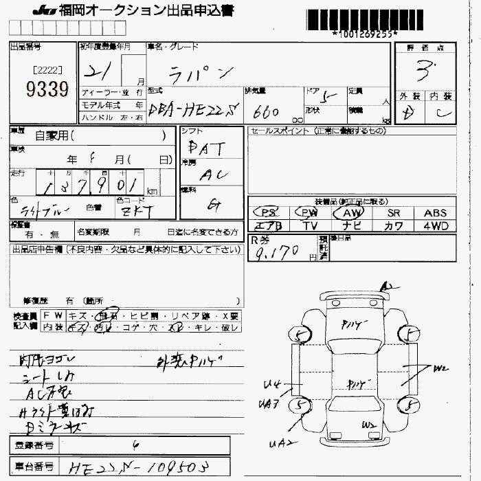 Статус не продан Лот 9339 Аукцион JU Fukuoka Дата аукциона 07.11.2025