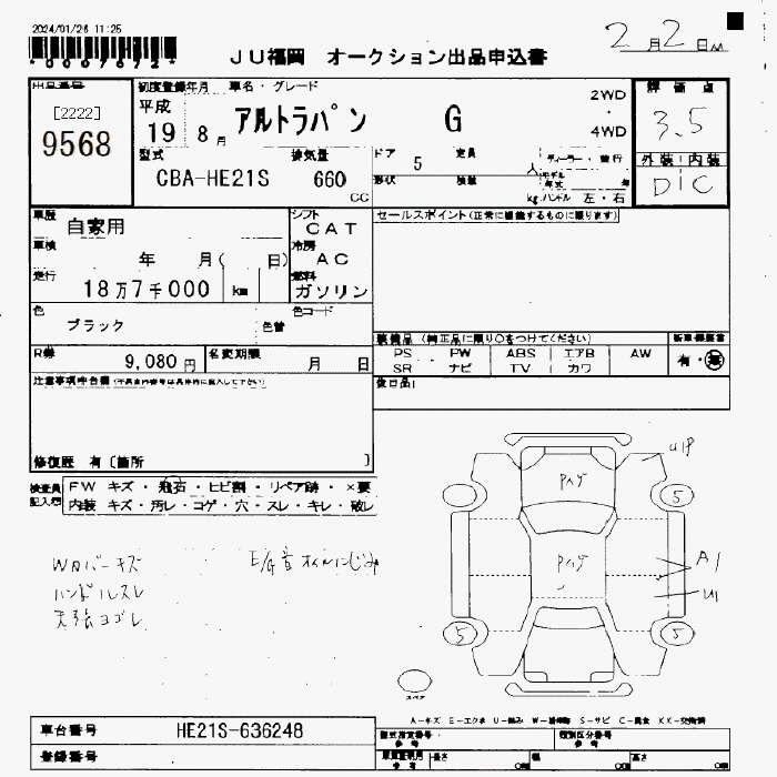 Статус не продан Лот 9568 Аукцион JU Fukuoka Дата аукциона 07.11.2025