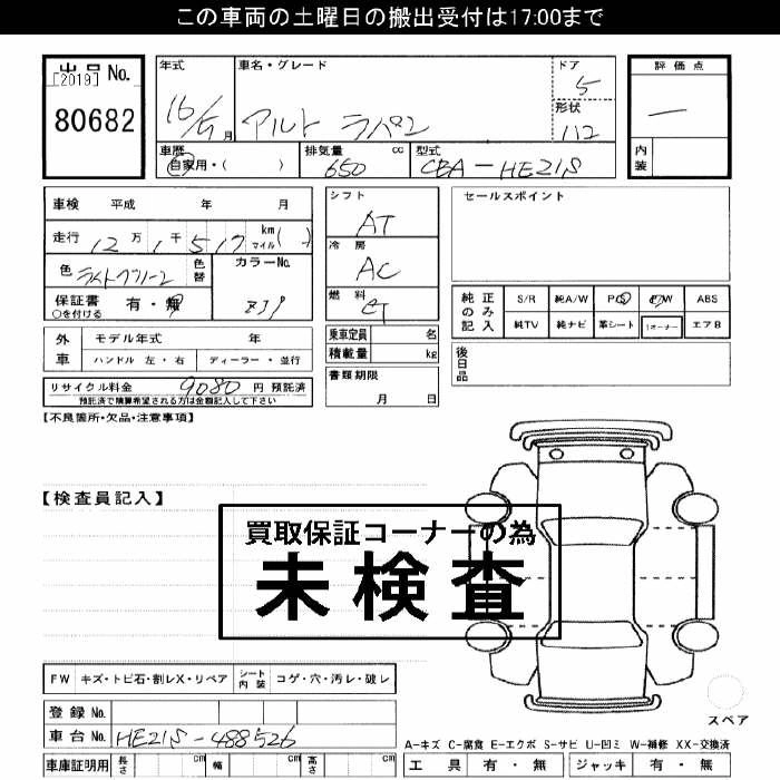 Статус выставлен на аукцион Лот 80682 Аукцион JU Gifu Дата аукциона 08.11.2025