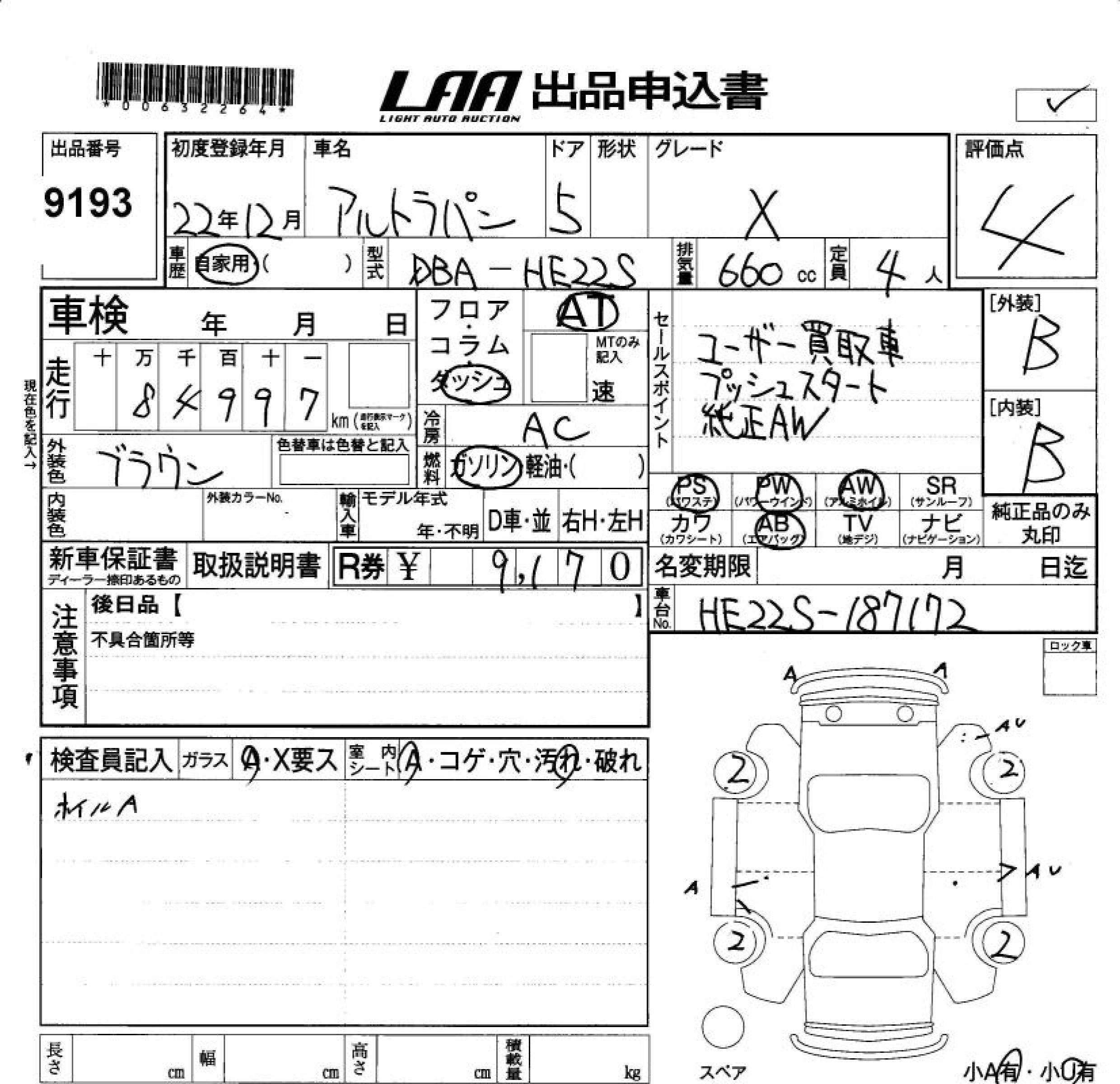Статус продан Лот 9193 Аукцион LAA Okayama Дата аукциона 07.11.2025