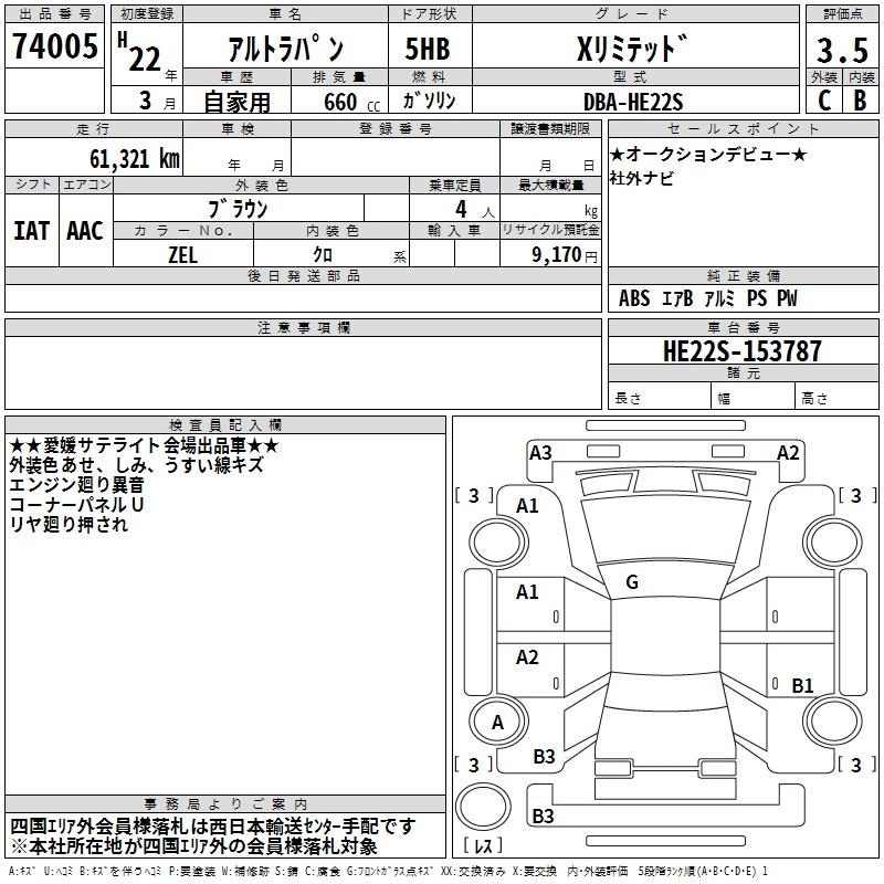 Статус выставлен на аукцион Лот 74005 Аукцион TAA Shikoku Дата аукциона 09.12.2025