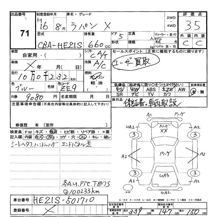 Год выпуска2004 Пробег 100 000 км КузовHE21S КомплектацияX