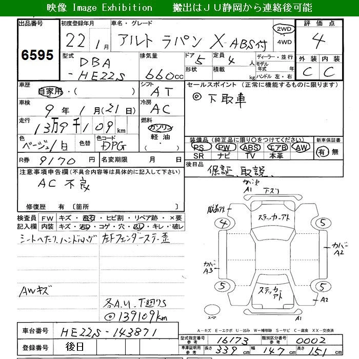 Год выпуска2010 Пробег 139 000 км КузовHE22S КомплектацияX ABS EXIST