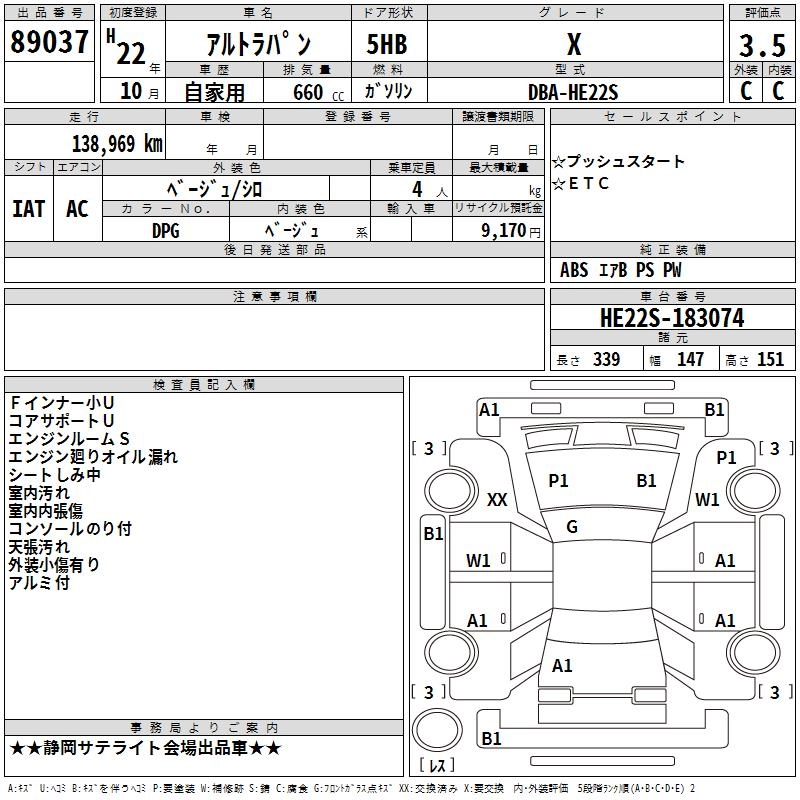 Год выпуска2010 Пробег 139 000 км КузовHE22S КомплектацияX
