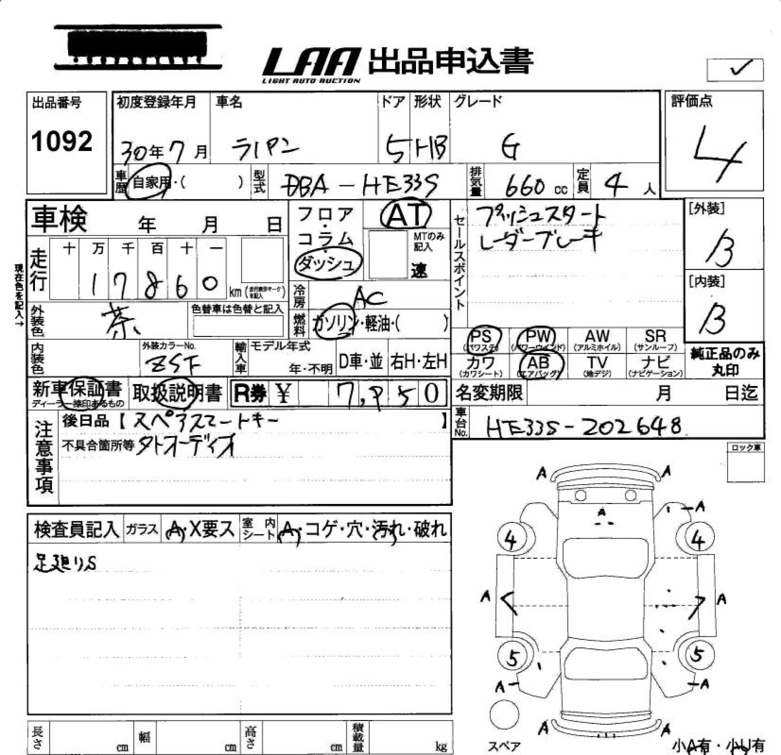 Статус выставлен на аукцион Лот 1092 Аукцион LAA Okayama Дата аукциона 26.12.2025
