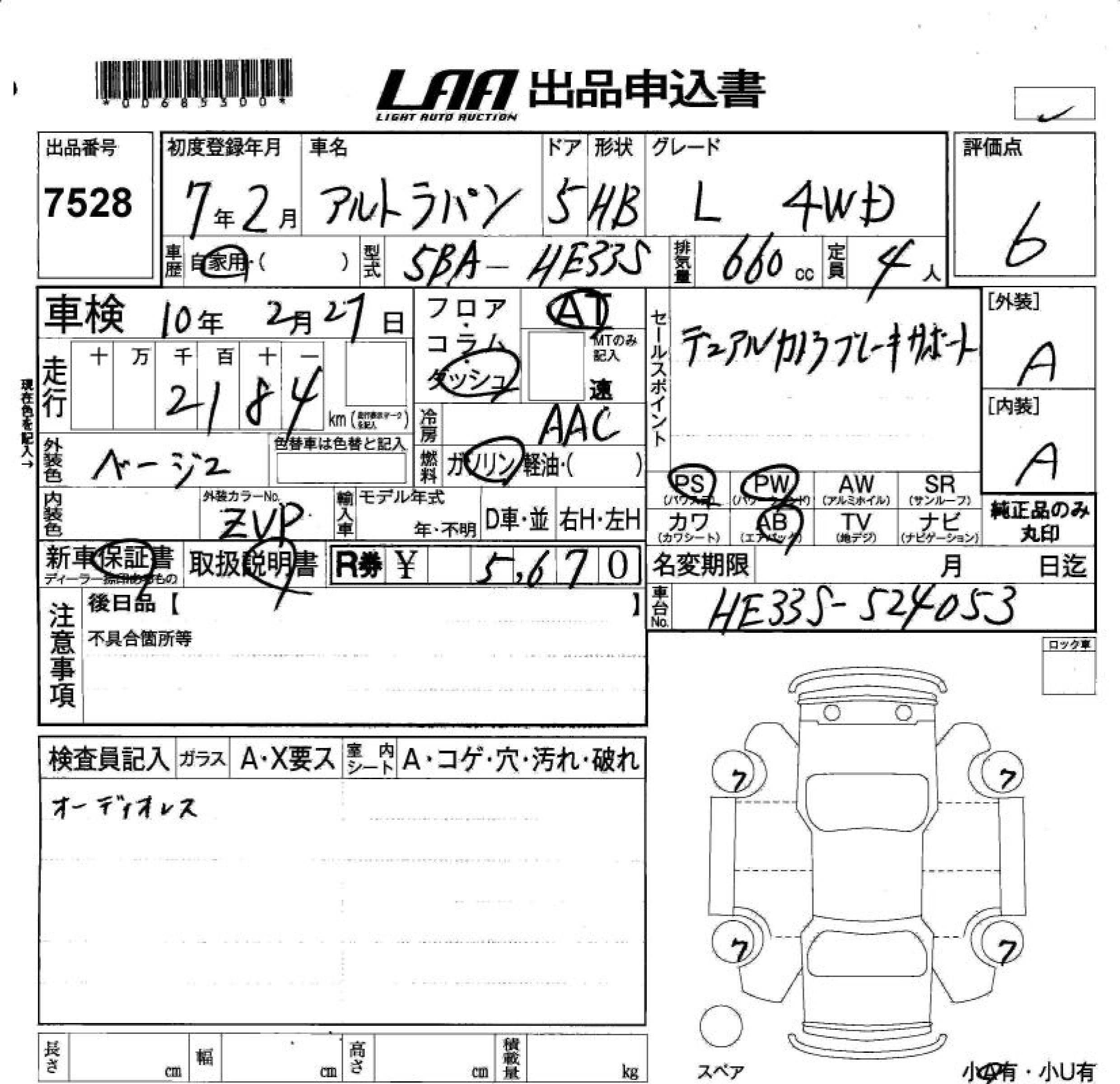 Статус не продан Лот 7528 Аукцион LAA Okayama Дата аукциона 23.01.2026