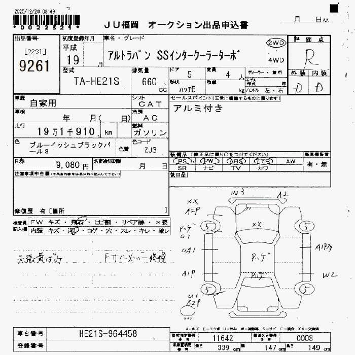 Статус не продан Лот 9261 Аукцион JU Fukuoka Дата аукциона 23.01.2026
