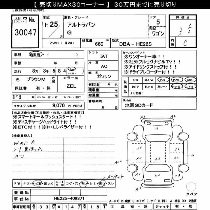 Год выпуска2013 Пробег 83 000 км КузовHE22S КомплектацияG