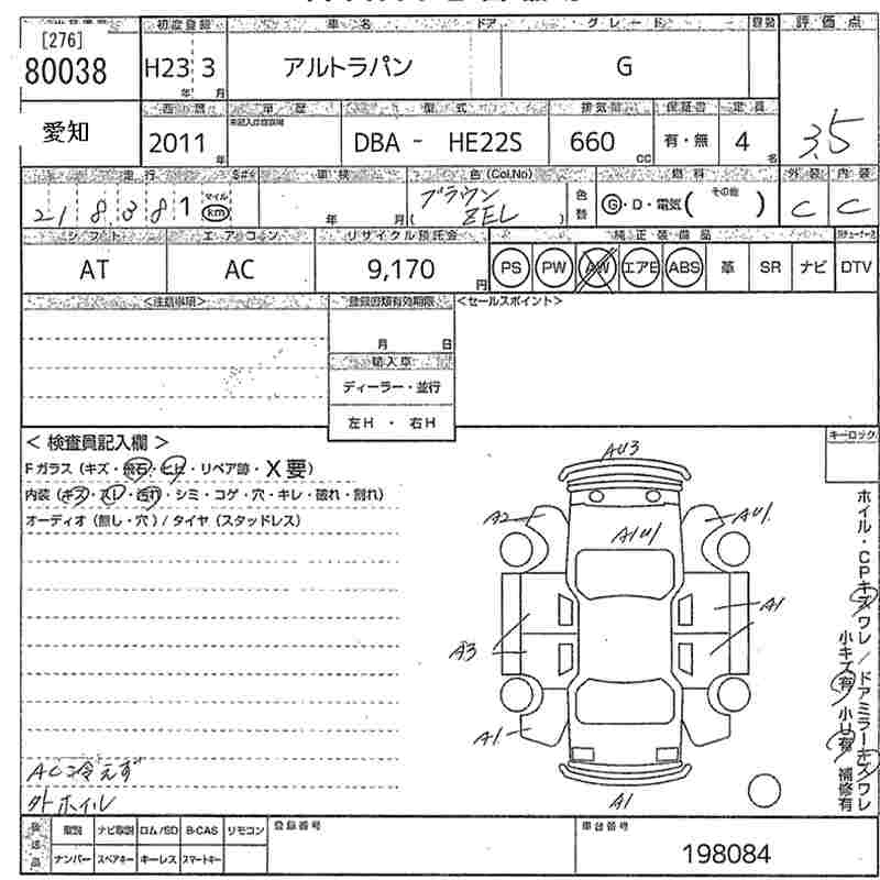Год выпуска2011 Пробег 218 000 км КузовHE22S КомплектацияG