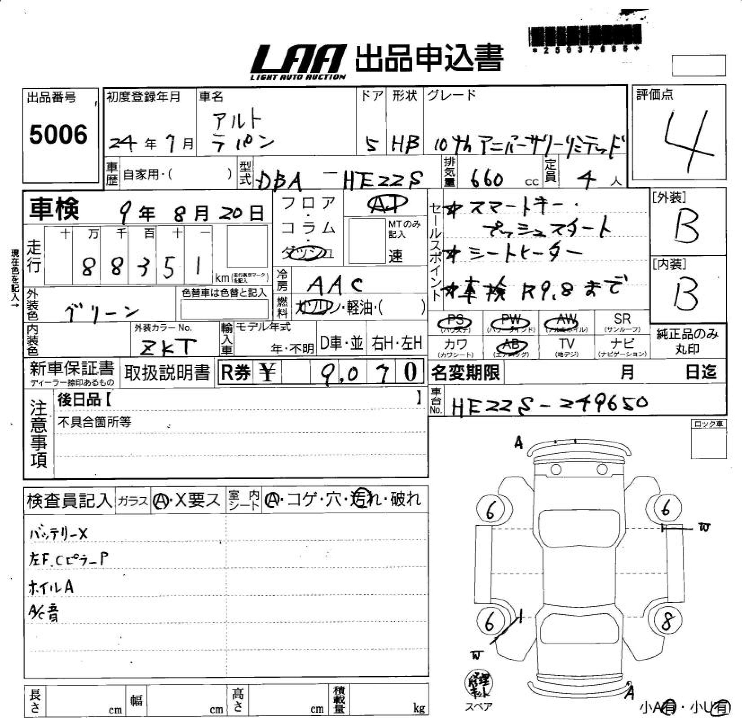 Год выпуска2012 Пробег 88 000 км КузовHE22S Комплектация10TH ANNIVERSARY LIMI TE