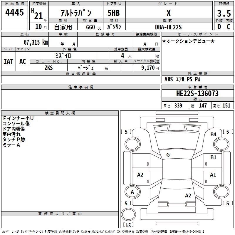 Статус выставлен на аукцион Лот 4445 Аукцион TAA Chubu Дата аукциона 12.03.2026