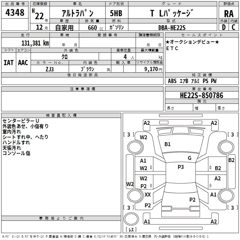 Год выпуска2010 Пробег 131 000 км КузовHE22S КомплектацияT L PACKAGE