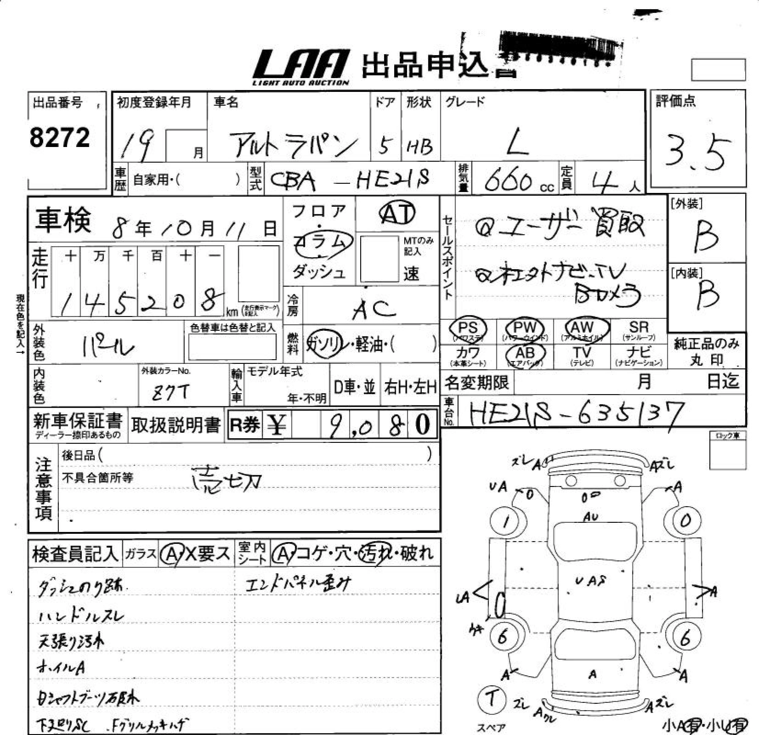 Год выпуска2007 Пробег 145 000 км КузовHE21S КомплектацияL