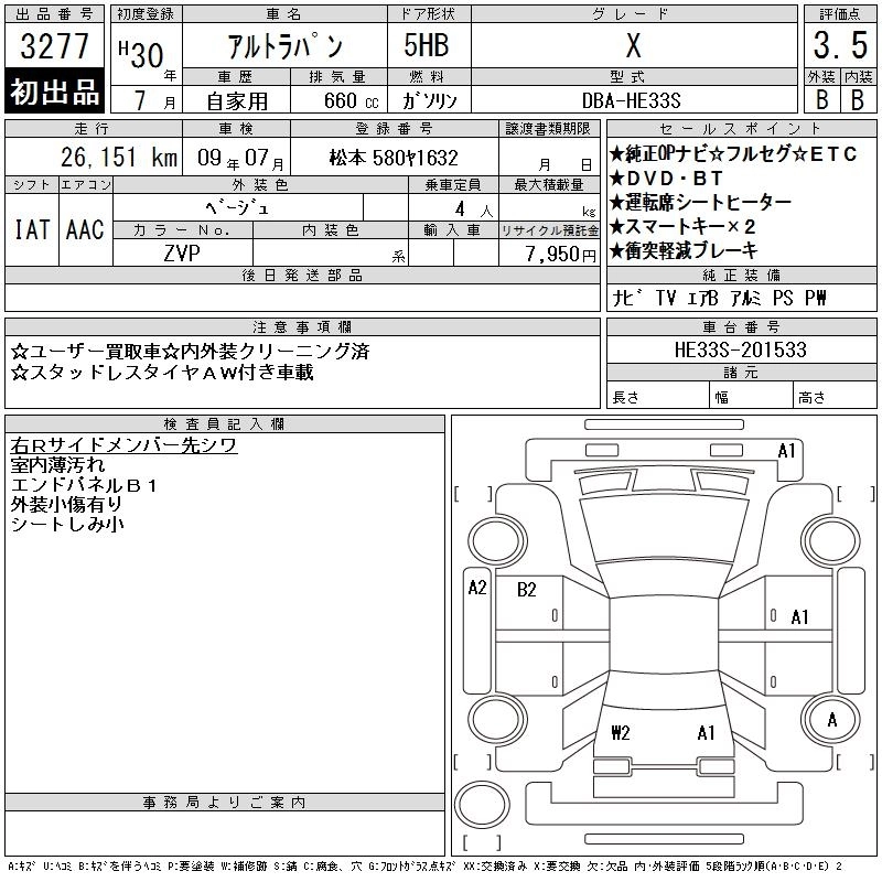 Статус выставлен на аукцион Лот 3277 Аукцион CAA Chubu Дата аукциона 11.03.2026