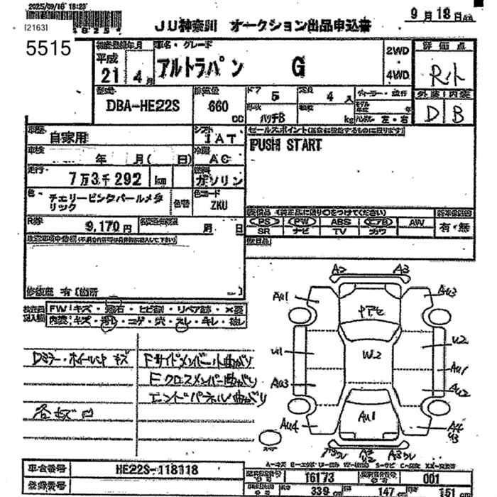 Год выпуска2009 Пробег 73 000 км КузовHE22S КомплектацияG