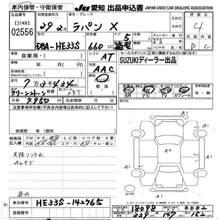 SUZUKI ALTO LAPIN 2017 г., лот № 2556