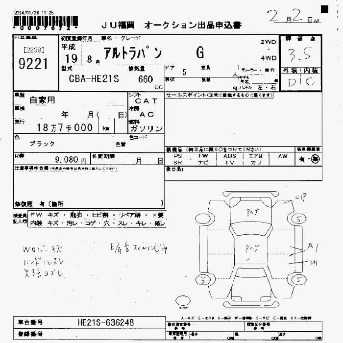 Статус выставлен на аукцион Лот 9221 Аукцион JU Fukuoka Дата аукциона 13.03.2026