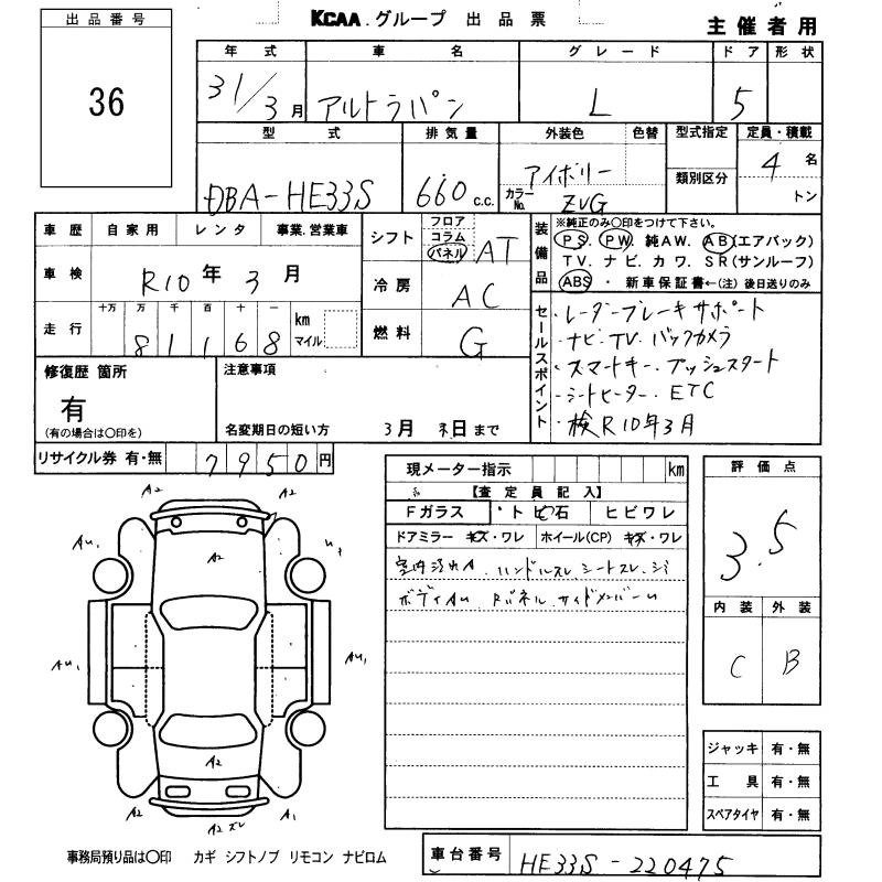 Пробег 81 000 км КузовHE33S КомплектацияL