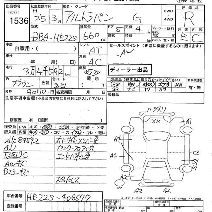 Год выпуска2013 Пробег 85 000 км КузовHE22S КомплектацияG