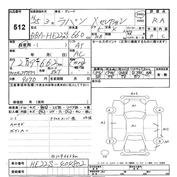 Статус выставлен на аукцион Лот 512 Аукцион JU Shizuoka Дата аукциона 17.03.2026