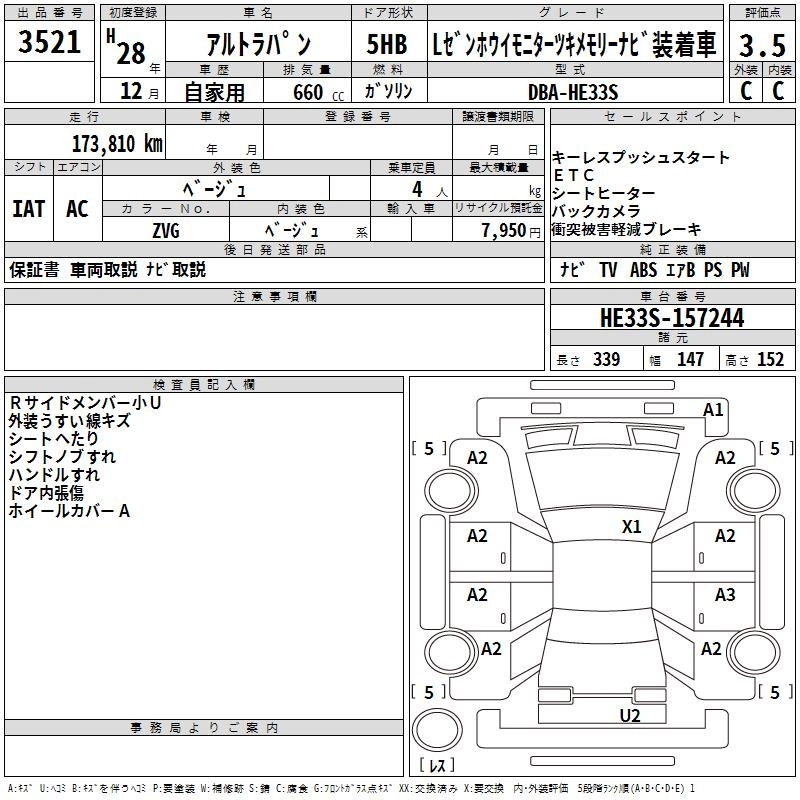 174 000 км КузовHE33S КомплектацияLZEN HOWE I MONITOR EXIST MEMORY NAVIGATION