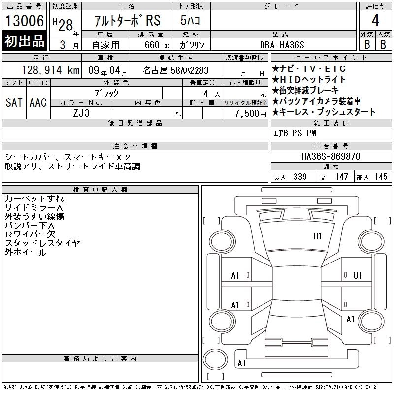 Статус выставлен на аукцион Лот 13006 Аукцион CAA Chubu Дата аукциона 18.03.2026
