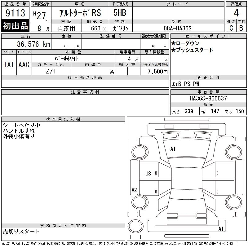 Статус выставлен на аукцион Лот 9113 Аукцион CAA Chubu Дата аукциона 18.03.2026