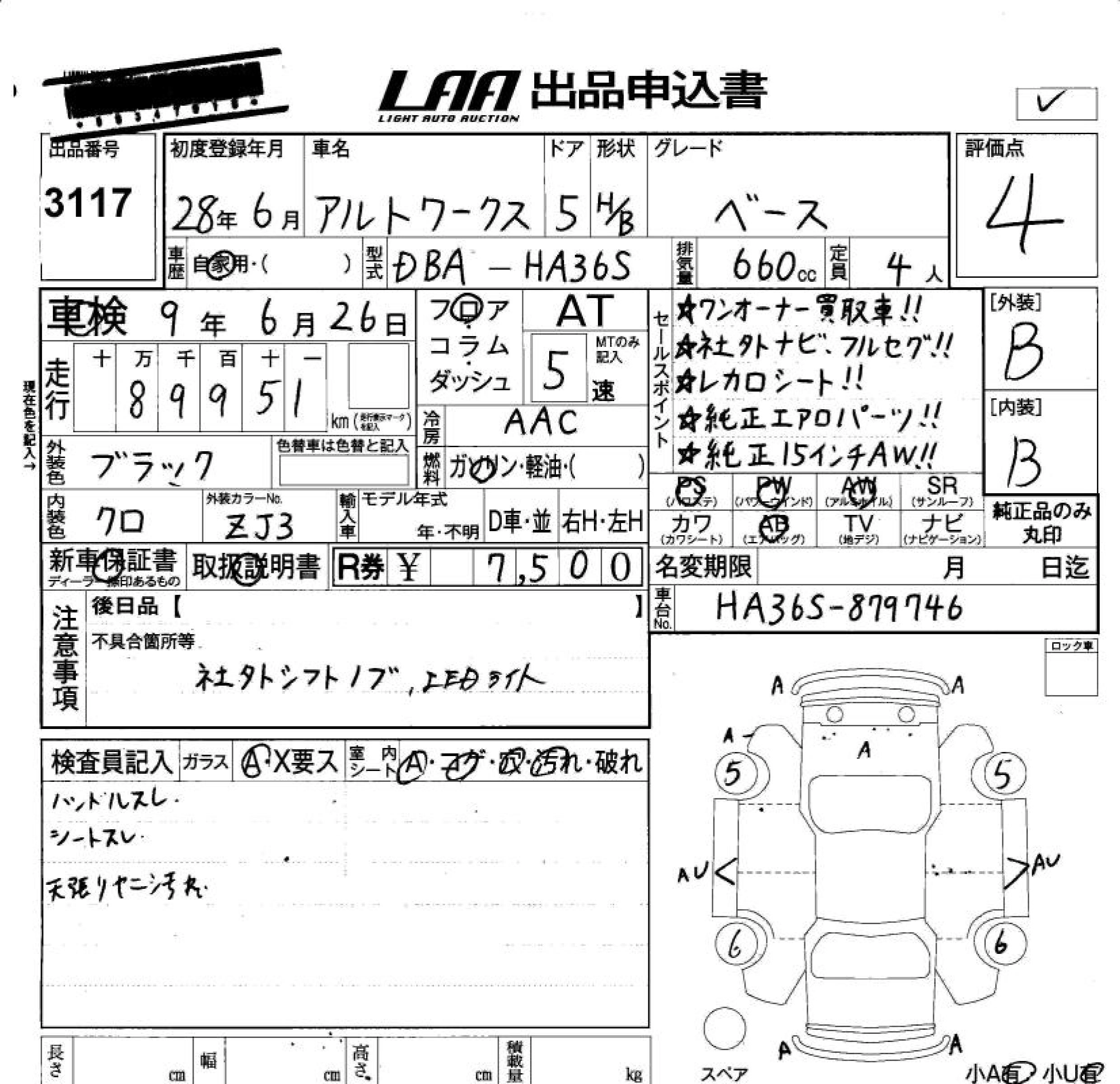 Статус не продан Лот 3117 Аукцион LAA Okayama Дата аукциона 23.01.2026