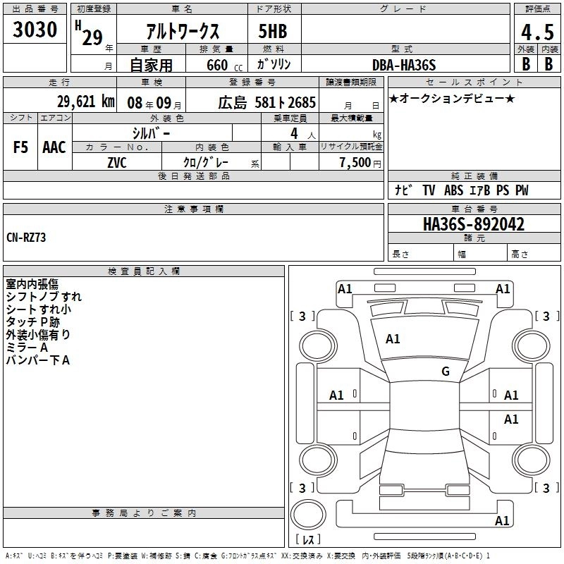 Год выпуска2017 Пробег 30 000 км КузовHA36S