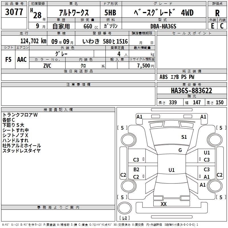 Год выпуска2016 Пробег 125 000 км КузовHA36S Комплектация BASE GRADE 4WD