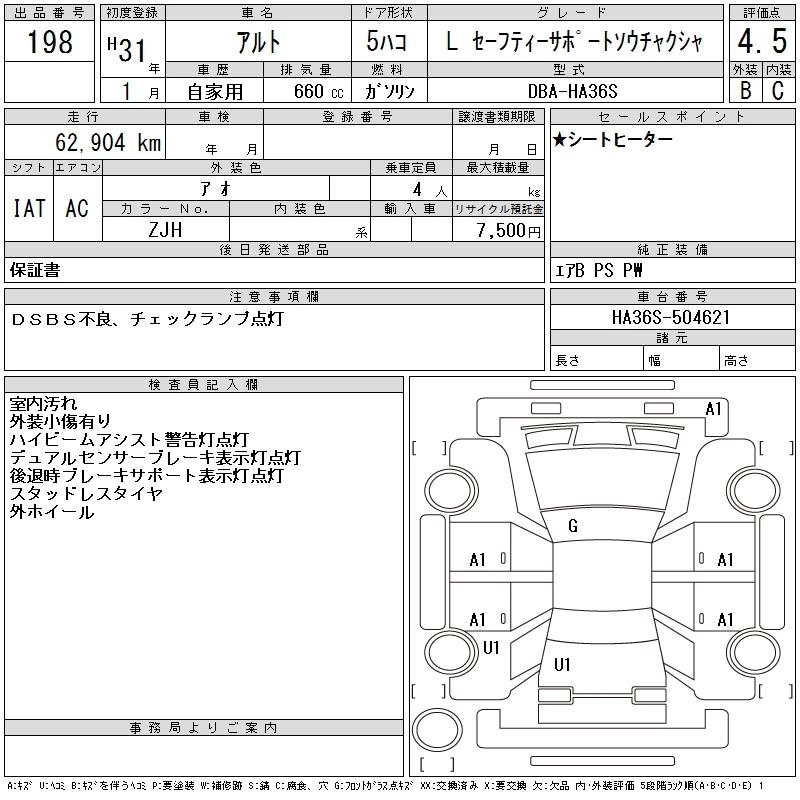Год выпуска2019 Пробег 63 000 км КузовHA36S КомплектацияL SAFETY - SUPPORT