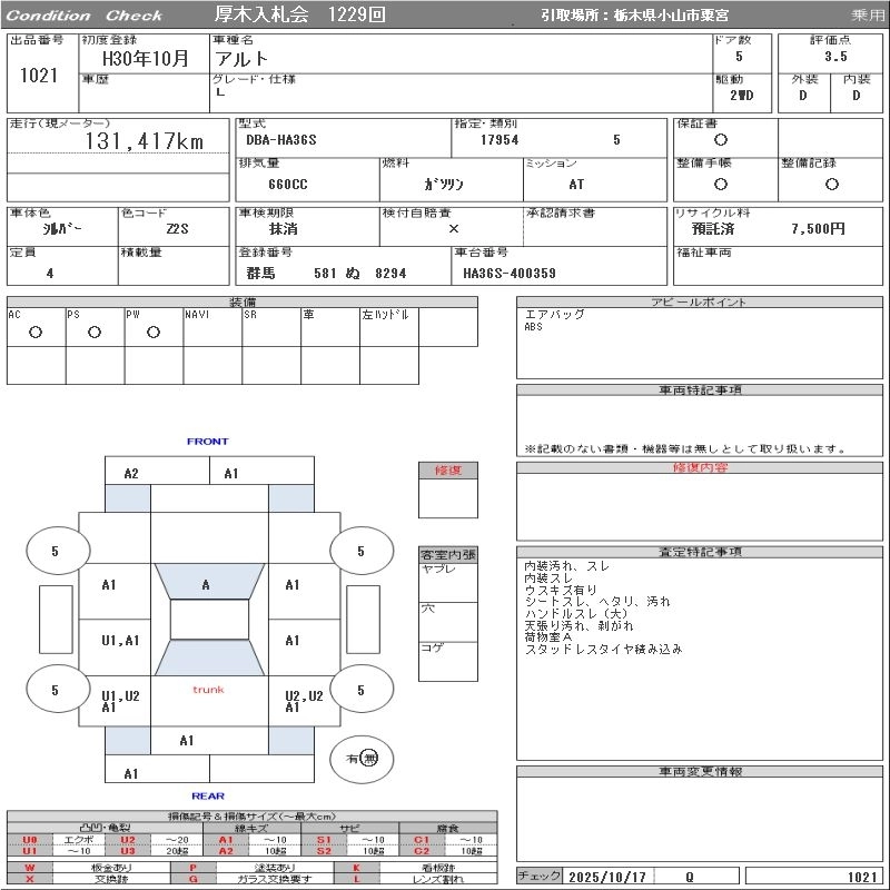 Статус выставлен на аукцион Лот 1021 Аукцион ORIX Atsugi Дата аукциона 22.10.2025