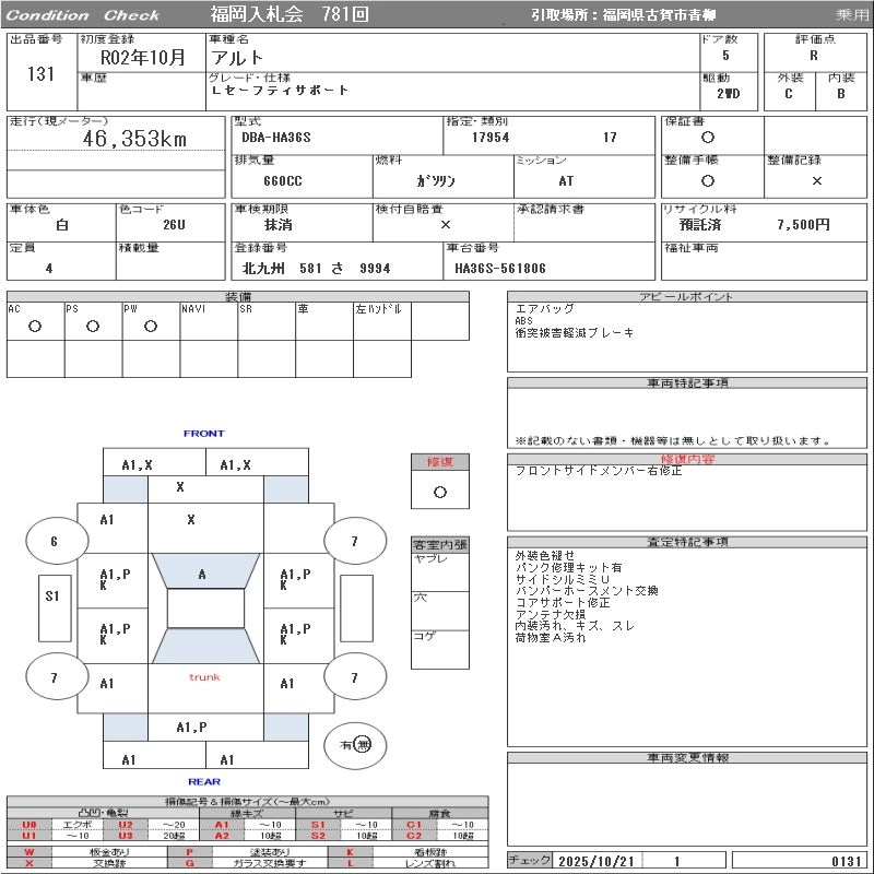 Статус выставлен на аукцион Лот 131 Аукцион ORIX Fukuoka Дата аукциона 28.10.2025